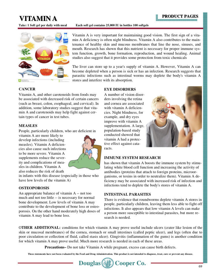 NIGHT BLINDNESS, eye & vision health. Helps boost & maintain immune system by stimulating white blood cell function by increasing antibodies. Lungs, mucous membrane, measles, & intestinal parasites.